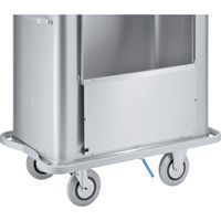 - Onderstel: 2 zwenk- en 2 bokwielen op de hoeken, ∅ 200 mm, 50 mm breed, lichtlopend, streeploos rubber met kogellagers en afdekkappen.