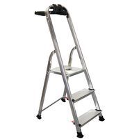 Aluminium trapladder met XXL-treden, zeer stabiel dankzij de vaste, omsluitende antislipvoeten. Goed beveiligd dankzij de relingen. Gerust idee: het plateau van corrosiebestendig staal met beveiliging tegen omhoog komen. Stabiel dankzij het gepatenteerde tredebevestigingssysteem. Het pluspunt? Hij is bijzonder praktisch dankzij de multifunctionele gereedschapshouder (met plek voor schroeven en boormachine, met emmerhaak) en de XXL-treden van 12 cm. Gemaakt in de EU Max. belasting (kg) : 150