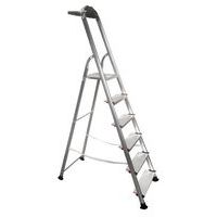 Aluminium trapladder met XXL-treden, zeer stabiel dankzij de vaste, omsluitende antislipvoeten. Goed beveiligd dankzij de relingen. Gerust idee: het plateau van corrosiebestendig staal met beveiliging tegen omhoog komen. Stabiel dankzij het gepatenteerde tredebevestigingssysteem. Het pluspunt? Hij is bijzonder praktisch dankzij de multifunctionele gereedschapshouder (met plek voor schroeven en boormachine, met emmerhaak) en de XXL-treden van 12 cm.