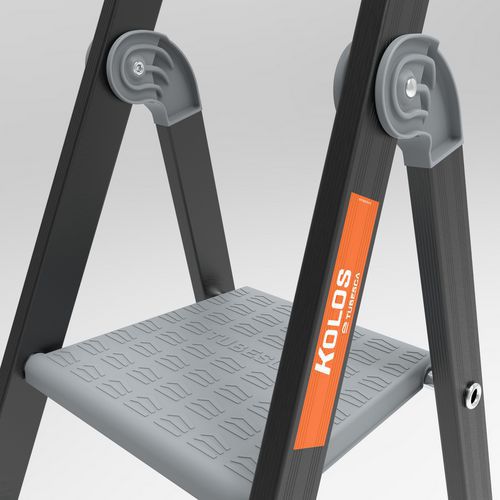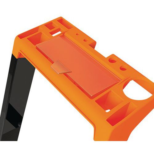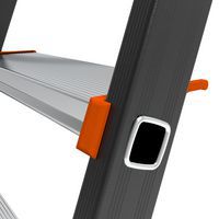 - Trapladder uitgerust met gereedschapshouder met geïntegreerde sluiting.