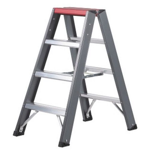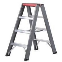 - Trapladder dubbelzijdig met reling en gereedschapsbak.