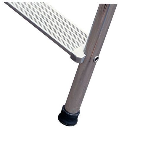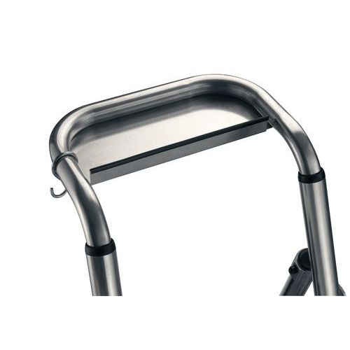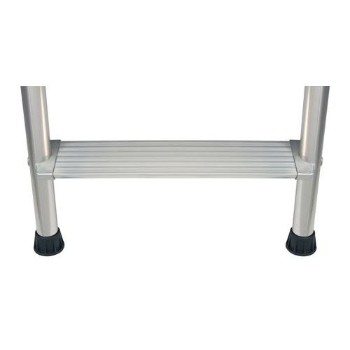 - Aluminium trapladder met reling en kantelbeveiliging aan de voorzijde.