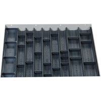 Maak uw individuele onderverdeling van uw lade. Compacte troggen voorzien van raster om eenvoudig de meegeleverde steekwanden te plaatsen. Van slagvast ABS materiaal, zorgt voor een lange levensduur. Wordt geleverd met extra bakjes om de lade mee op te vullen, voorkomt schuiven van de troggen.