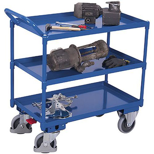 Tafelwagen staal met 3 laadvlakken, opstaande duwbeugel - Variofit