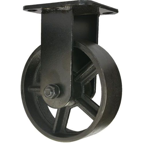 Trolleywiel vast Wieltje voor trolley. Vastgeschroefde as. Zwart epoxy gelast stalen frame. Zwart gietijzeren wiel.