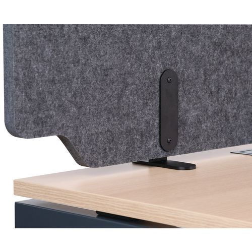 Tussenschot voor bureau met dubbele functionaliteit, zorgt voor privacy en geluidsabsorptie. Tussenschot vrij op het bureau, flexibel in het gebruik, lichtgewicht en daardoor eenvoudig verplaatsbaar. Eenvoudig aan te brengen product met een uitsparing voor de kabel, (2 zwarte poten). Uitsparing voor de doorvoer van stroomkabels. 2 chique en tijdloze modellen met originele vormgeving.