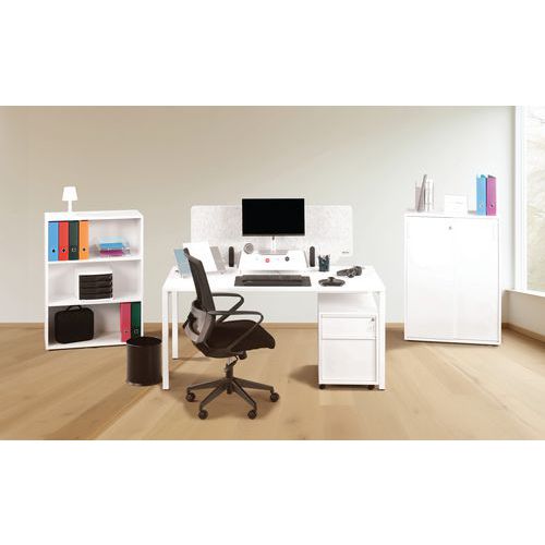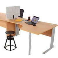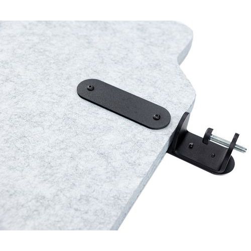 Tussenschot voor bureau met dubbele functionaliteit, zorgt voor privacy en geluidsabsorptie. Tussenschot voor montage op bureau, bovendikte van 5 tot 40 mm. Uitsparing voor de doorvoer van stroomkabels. 2 chique en tijdloze modellen met originele vormgeving.