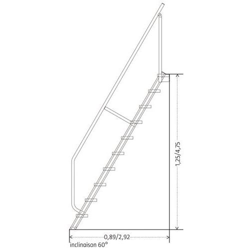 - Leuning voor vaste trap met hellingshoek van 60°.