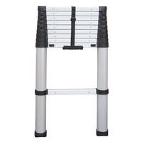Telescopische ladder van aluminium, uiterst compact. Beveiligde constructie met vergrendelingsindicator. Systeem om de sluiting te vertragen. Comfortabel met treden met antislipstrepen XL. Eenvoudig toegankelijk: ruimte van 26 cm tussen de treden. Eenvoudig op te bergen en te vervoeren met een transporthandgreep. Max. belasting (kg) : 150
