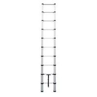 Telescopische ladder van aluminium, uiterst compact. Beveiligde constructie met vergrendelingsindicator. Systeem om de sluiting te vertragen. Comfortabel met treden met antislipstrepen XL. Eenvoudig toegankelijk: ruimte van 26 cm tussen de treden. Eenvoudig op te bergen en te vervoeren met een transporthandgreep. Max. belasting (kg) : 150 kg