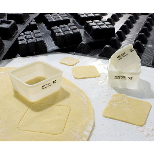 Gladde uitsteekvormen met afgeronde hoeken, ontworpen voor zandkoekjes en geschikt voor het maken van bodems voor diverse Flexipan® bakvormen.