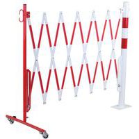 Uittrekbaar stalen hek op wielen en ronde paal. Tweekleurige strepen voor betere zichtbaarheid. Alleen geschikt voor binnengebruik. Eenvoudig te hanteren, op te bergen en te gebruiken dankzij de wielen met rem. TÜV-certificaat. Grondplaat 120 x 195 mm.