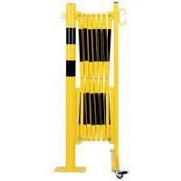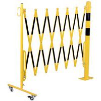 Uittrekbaar stalen hek op wielen en ronde paal. Tweekleurige strepen voor betere zichtbaarheid. Alleen geschikt voor binnengebruik. Eenvoudig te hanteren, op te bergen en te gebruiken dankzij de wielen met rem. TÜV-certificaat. Grondplaat 120 x 195 mm.