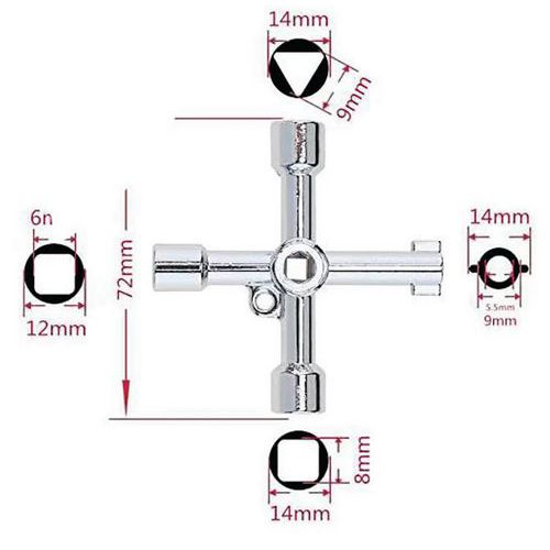 | Productnaam | Universele sleutel met 4 vormen, Totale lengte: 72 mm, Aantal sleutels: 1 |