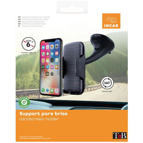 | Productnaam | Universele smartphonehouder voor de voorruit, Materiaal: ABS, Kleur: Zwart, Recyclebare verpakking: Ja - 100% |