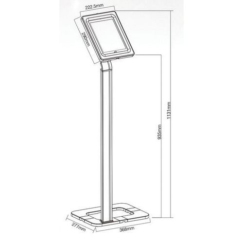| Productnaam | Universele tabletstandaard met antidiefstalbeveiliging DESQ, Materiaal: Aluminium, Hoogte: 1131 mm |