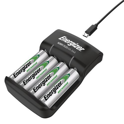 - Deze USB-oplader van Energizer laadt de batterijen op per twee.