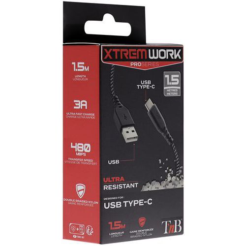 | Productnaam | USB-/USB-C-kabel XTREMWORK, Kleur: Zwart/grijs, Recyclebare verpakking: Ja - 100%, Lengte: 1.50 m |
