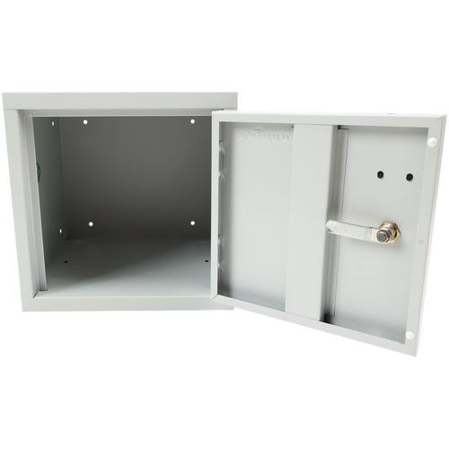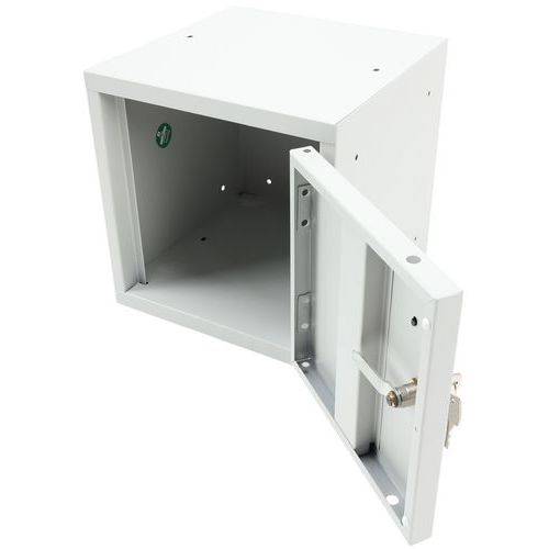 Voorgeboorde kubuskast, zelf te monteren. Afsluitbaar met cilinderslot. Vak met ruimte voor etikethouders. Comfortabel met deur die tot 180° te openen is. Plaatstaal dikte : 7/10de Klantgarantie : 10 jaar
