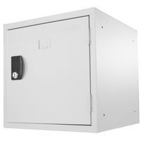 Voorgeboorde kubuskast, zelf te monteren. Afsluitbaar met cilinderslot. Vak met ruimte voor etikethouders. Comfortabel met deur die tot 180° te openen is.