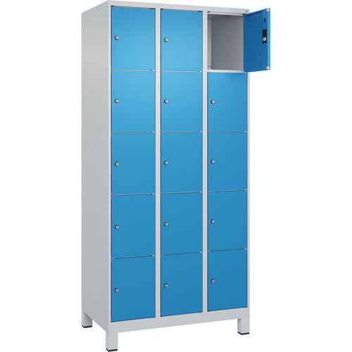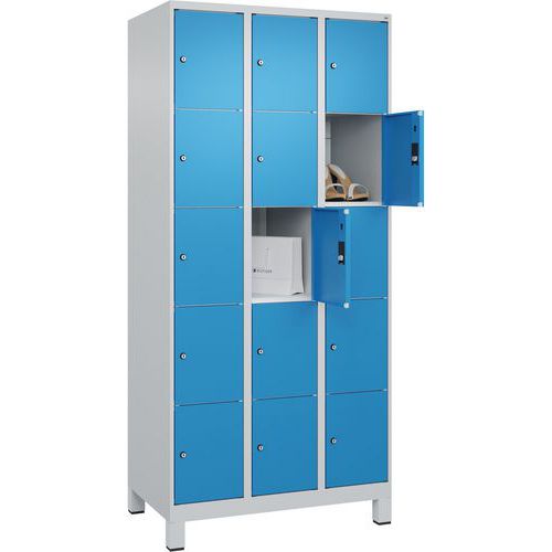 Vakkenkast Classic PLUS op poten, 3 vaks, 15 vaks, Type garderobekast: Standaard, Materiaal: Staal