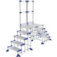Vaste aluminium loopbrug met dubbele ingang, geringe opstaphoogte. Veilig: 1 geïntegreerde reling voor extra valbeveiliging. Stabiel met breed platform en diepe antisliptreden. Loopbrug voor bevestiging op de vloer, indien nodig met brede voeten met dubbele bevestiging. Zeer stevige constructie, geschikt voor intensief gebruik, vereist vlakke ondergronden. Comfortabel, innovatief, multifunctioneel en aanpasbaar aan alle behoeften. Voet met dubbele bevestiging, schroef Ø 8 mm (niet meegeleverd). Reling met geïntegreerde plint (H 100 mm).
