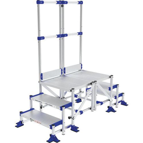 Vaste aluminium loopbrug met dubbele ingang, geringe opstaphoogte. Veilig: 1 geïntegreerde reling voor extra valbeveiliging. Stabiel met breed platform en diepe antisliptreden. Loopbrug voor bevestiging op de vloer, indien nodig met brede voeten met dubbele bevestiging. Zeer stevige constructie, geschikt voor intensief gebruik, vereist vlakke ondergronden. Comfortabel, innovatief, multifunctioneel en aanpasbaar aan alle behoeften. Voet met dubbele bevestiging, schroef Ø 8 mm (niet meegeleverd). Reling met geïntegreerde plint (H 100 mm). Gemaakt in de EU Max. belasting (kg) : 200 Klantgarantie : 3 jaar