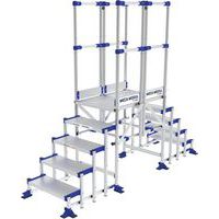 Vaste aluminium loopbrug met dubbele ingang, geringe opstaphoogte. Veilig: 2 geïntegreerde relingen voor extra valbeveiliging. Stabiel met breed platform en diepe antisliptreden. Loopbrug voor bevestiging op de vloer, indien nodig met brede voeten met dubbele bevestiging. Comfortabel, innovatief, multifunctioneel en aanpasbaar aan alle behoeften. Zeer stevige constructie, geschikt voor intensief gebruik, vereist vlakke ondergronden. Voet met dubbele bevestiging, schroef Ø 8 mm (niet meegeleverd). Reling met geïntegreerde plint (H 100 mm).