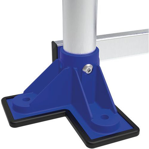 Vaste aluminium loopbrug met dubbele ingang, geringe opstaphoogte. Veilig: 2 geïntegreerde relingen voor extra valbeveiliging. Stabiel met breed platform en diepe antisliptreden. Loopbrug voor bevestiging op de vloer, indien nodig met brede voeten met dubbele bevestiging. Comfortabel, innovatief, multifunctioneel en aanpasbaar aan alle behoeften. Zeer stevige constructie, geschikt voor intensief gebruik, vereist vlakke ondergronden. Voet met dubbele bevestiging, schroef Ø 8 mm (niet meegeleverd). Reling met geïntegreerde plint (H 100 mm). Gemaakt in de EU Klantgarantie : 3 jaar Max. belasting (kg) : 200