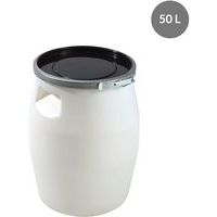 | Productnaam | Vat 30 L tot 50 L met deksel, Totale inhoud: 50 L, Totale hoogte: 540 mm, Materiaal: HDPE, Totale Ø: 393 mm |