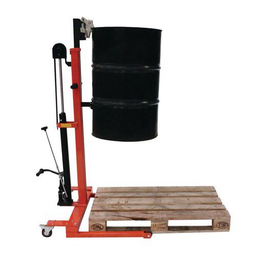 - Stevige hydraulische vatenheffer van metaal met kader.