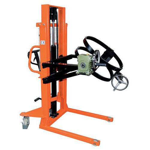 - Vatenstapelaar kantelaar voor metalen vat met handmatig heffen door dissel of pedaal.