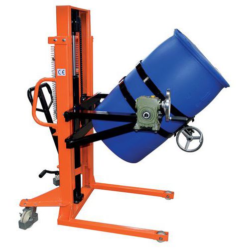 - Vatenstapelaar kantelaar voor metalen vat met handmatig heffen door dissel of pedaal.
