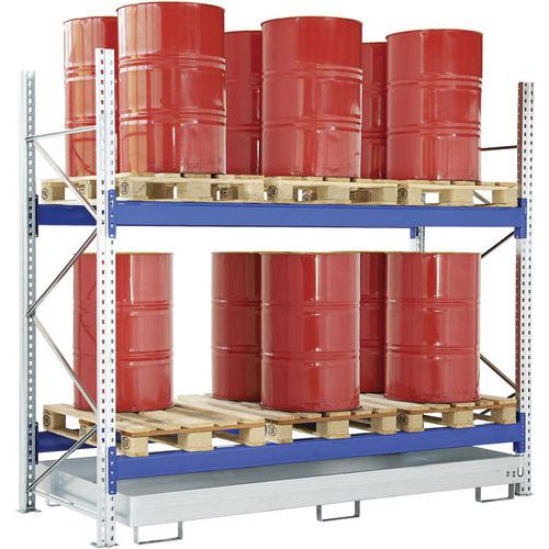 - Voor liggende opslag van 4 vaten van 200 liter.