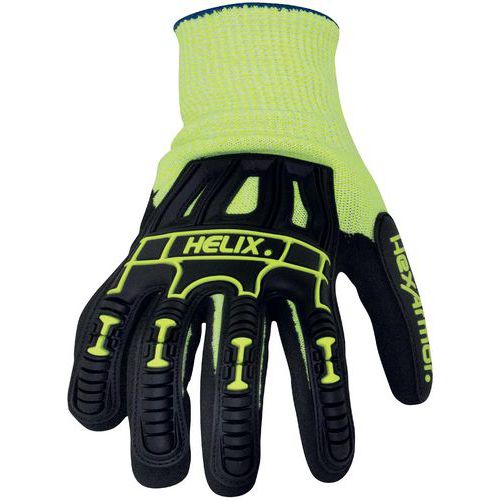 Helix 3000 beschermende handschoenen tegen snijwonden (niveau D) en stoten, ondersteuning 13 HPPE / glasvezelmeter, flexibel en ergonomisch exoskeleton Impact Exoskeleton™, gezandstraalde nitril palmcoating voor hechting in droge en vochtige omgevingen.