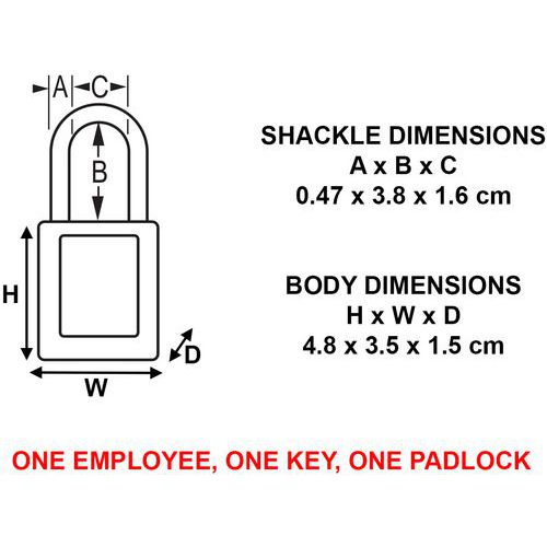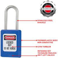 Veiligheidshangslot, Kleur: Blauw, Breedte: 35 mm, Hoogte: 4.8 cm, Beugel Ø: 5 mm