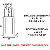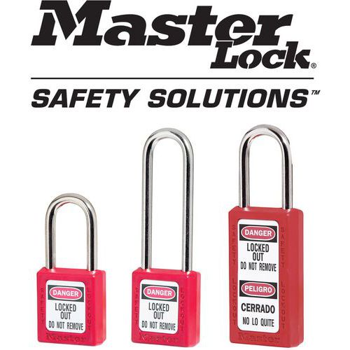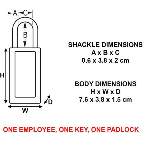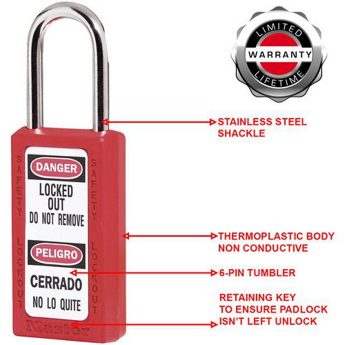 Veiligheidshangslot, Kleur: Rood, Breedte: 38 mm, Hoogte: 7.6 cm, Beugel Ø: 6 mm