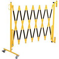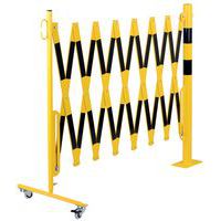 - Uittrekbaar stalen hek op wielen en vierkante paal voor tijdelijke afbakening.