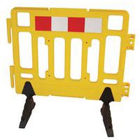 - Standaard uitgerust met een haak en een oogje om verschillende barrières met elkaar te verbinden, in lijn of vierkant.