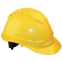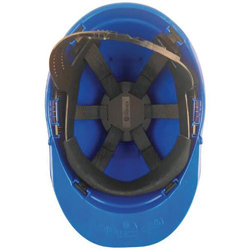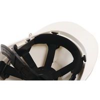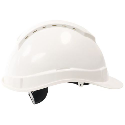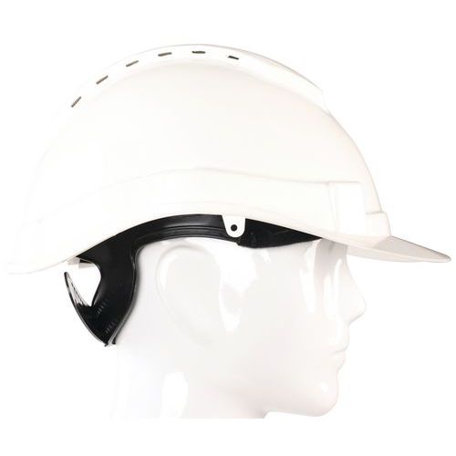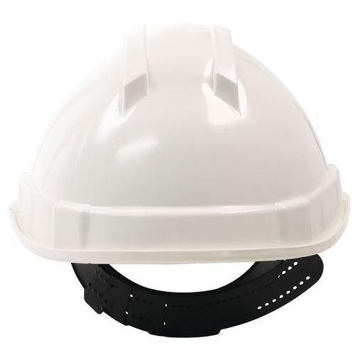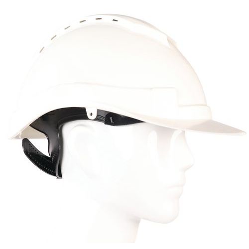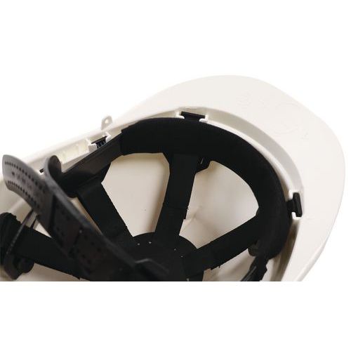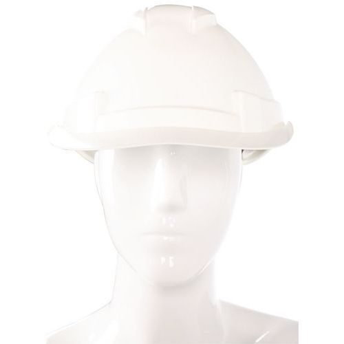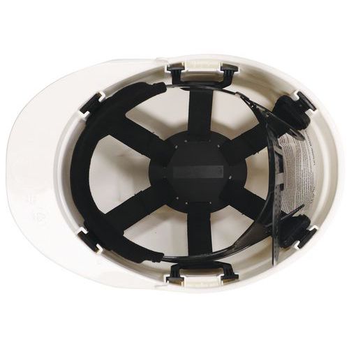 Klassiek veiligheidshelm met 6 bevestigingspunten. De witte bouwhelm is onmisbaar bij zware werkzaamheden. Deze moderne helm met vizier heeft een verstelbaar binnenharnas. Het stevige veiligheidsontwerp beschermt u tegen schokken en weersinvloeden. De geventileerde schaal zorgt voor warmteafvoer en meer comfort.