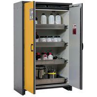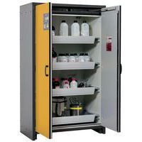Veilige opslag van gevaarlijke producten, ontvlambare stoffen in de werkruimtes. Robuust en duurzaam dankzij de solide buitenstructuur van brandwerende platen. Ergonomisch met deuren die in elke positie worden vastgehouden. Automatisch sluiten van deuren ingeval van brand. Afsluitbare deuren met een centrale sluitsysteem voor gecontroleerd gebruik. Eenvoudig transport door geïntegreerde transportonderstel. Geïntegreerd beluchtings- en ventilatiesysteem voor aansluiting (diameter 75 mm) op een technisch ontluchtingsapparaat. Max. belasting (kg) : 600
