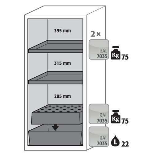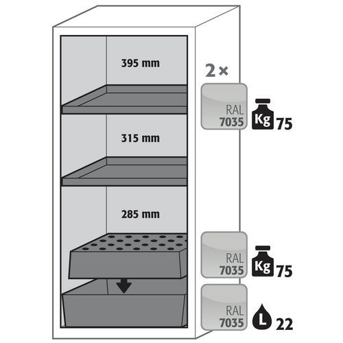 Veiligheidskast S-CLASSIC-90 - met opvangbak - 1298mm - Asecos