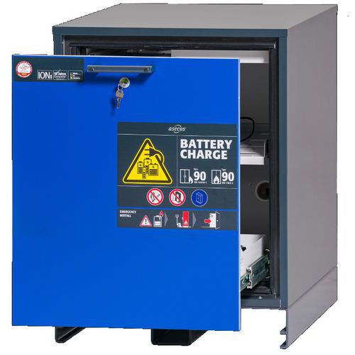 | Productnaam | Veiligheidskast voor de opslag van lithium-ionbatterijen, Materiaal: Staal, Totale hoogte: 780 mm |