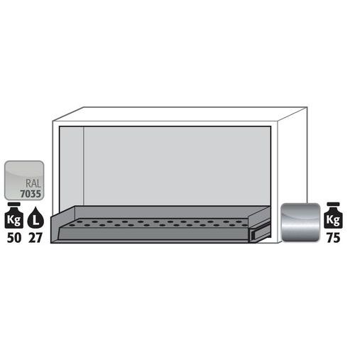 Veilige opslag, voldoet aan de geldende regelgeving voor gevaarlijke, ontvlambare producten in werkruimtes Robuust en duurzaam: Stevige constructie aan de buitenzijde van brandwerende platen met een coating van melaminehars 3 bevestigingsscharnieren per deur volledig sluitmechanisme en beveiligingselementen ter bescherming tegen corrosie, gemonteerd buiten de opslagruimte hoogwaardige deur, krasbestendig, met gestructureerd oppervlak met epoxy-coating Ergonomisch: de deur blijft in de stand staan bij het openen, automatische sluiting in geval van brand Gecontroleerd gebruik: vergrendelbare deur, compatibel met centrale vergrendeling Eenvoudig transport: geïntegreerde transportsokkel, eenvoudig afgewerkte plint of plint met 4 nivelleringsvoeten optioneel beschikbaar Beluchting en ontluchting: ingebouwd beluchtings- en ventilatiesysteem voor aansluiting (diameter 75 mm) op een technisch luchtafvoersysteem Getest en gecertificeerd conform de Amerikaanse norm FM 6050 -