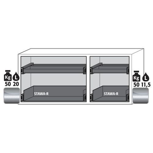 Veiligheidsonderbouwkast UB-S-90 UB90.060.140.2S_Asecos, Totale hoogte: 1968 mm, Totale breedte: 1196 mm Veiligheidsonderbouwkast UB-S-90 UB90.060.140.2S_Asecos, Totale hoogte: 1968 mm, Totale breedte: 1196 mm