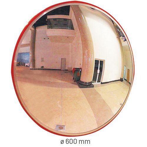Veiligheidsspiegel met paal, Bewakingsradius: 6 m, Vorm: Rond, Frame kleur: Rood, Spiegel Ø: 600 mm