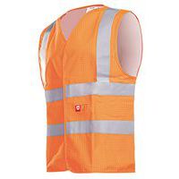 Vest voor goede zichtbaarheid zonder mouwen, V-hals. Sluiting met klittenband. Brandwerende reflecterende banden (50 mm). Antistatisch en slipvast. Doorgestikte naden.