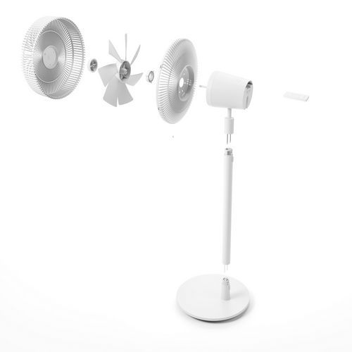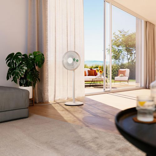 De ventilator op voet Finn zorgt voor een aangename koelte op warme dagen dankzij zijn oscillatiefunctie en technologie met een hoge energie-efficiëntie. Dankzij de verwijderbare stang kan de mobiele Finn worden gebruikt als losse vloer- of tafelventilator of op voet. Hij is extreem stil en geschikt voor de slaapkamer, de kinderkamer en het kantoor. Deze flexibele ventilator draait geruisloos van voor naar achter, zodat hij zorgt voor een optimale luchtcirculatie in de ruimte, tot op 8 meter afstand. De functies van de ventilator Finn, zoals de modus voor een natuurlijke bries, de nachtmodus en de timer van 1 tot 8 uur, zijn zeer eenvoudig te bedienen met de meegeleverde infraroodafstandsbediening.
