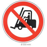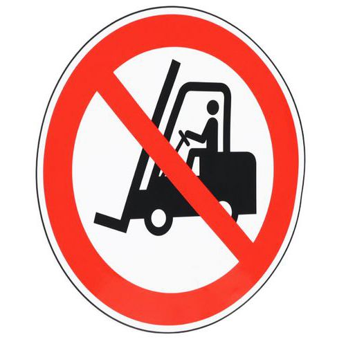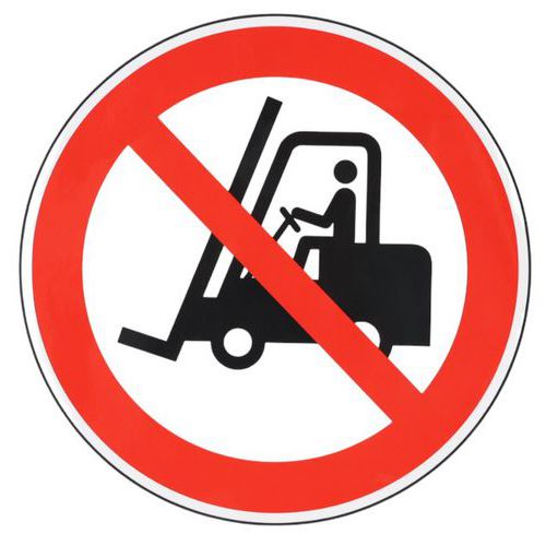 - Markeer zones voor voetgangers en laad- en losvoertuigen met dit verbodsbord met pictogram van een vorkheftruck.