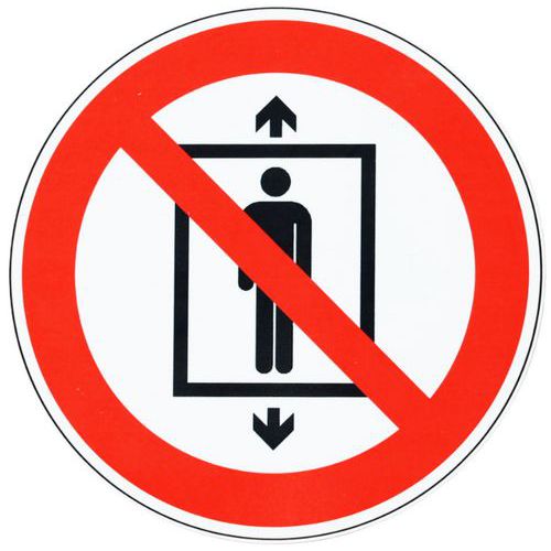 | Productnaam | Bord Personen in lift verboden, aluminium, Zelfklevend: nee, Stijf: ja, Norm ISO 7010: ja |